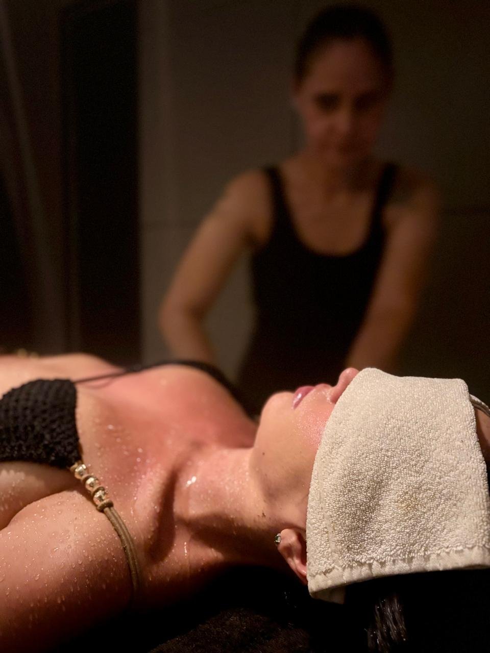 A experiência se inicia com um ritual de boas-vindas, preparando corpo e mente para o relaxamento.